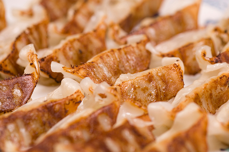 皮は、つるんとした食感と、もちもちとした歯ざわりがあり、包まれている具の旨味を更に引き出しています。新潟県の銘柄豚“和豚もち豚“。肉は繊維が細かく、ジューシーでとても軟らか。良質の脂肪酸を含みコレストロールの含有率が低いため、さっぱりとした味です。にんにく、生姜、にら、キャベツは国産使用。醤油は、風味を活かした新潟県産の“生造り醤油“。塩はミネラル豊富な自然塩を使用しています。